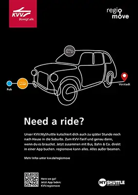 Mensch. KVV.regiomove macht’s einfach: alle Wege in einer App, alle Optionen mit nur einem Login. Klick –